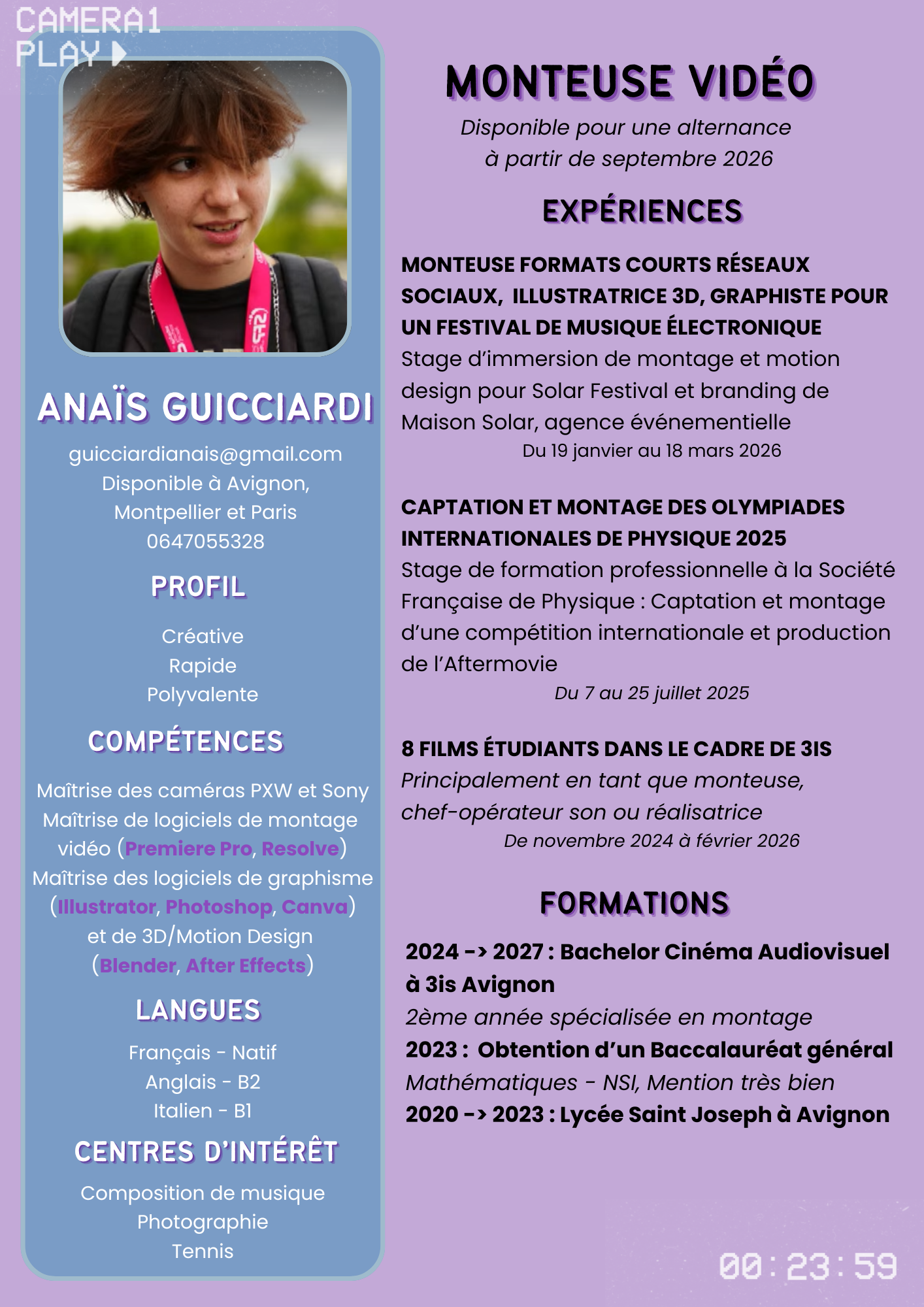 I'm Ana — an editor and motion designer based in Paris, trained at 3is, one of France's leading film schools. I blend cinematic editing with bold motion graphics to create work that feels alive. From festival after-movies to brand identity animations, I obsess over every frame and transition.